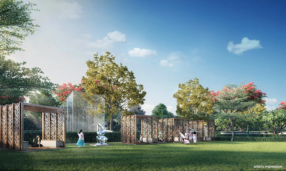 Landscaped gardens, walking tracks, sit-out zones, and serene green surroundings for peaceful living.